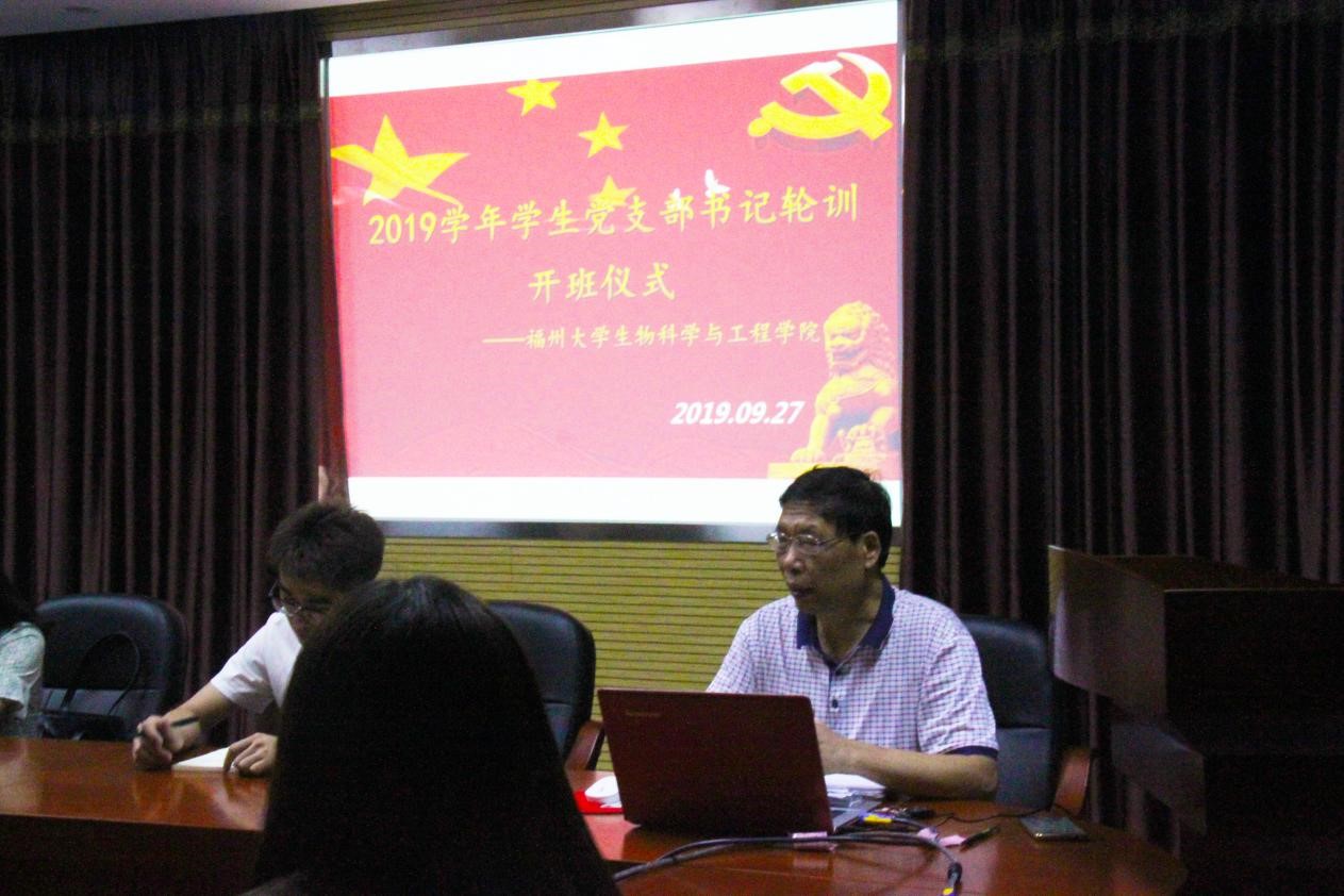 举行了2019年学生党支部书记“不忘初心,牢记使命”轮训开班仪式暨第一讲学习会。学院党委郑延平副书记做了主题为“学党章,用党章”的开班动员暨专题辅导报告,学院团委周越老师、辅导员廖加炜老师、辅导员郑丽婷老师出席仪式,学院学生党支部书记参加了学习。