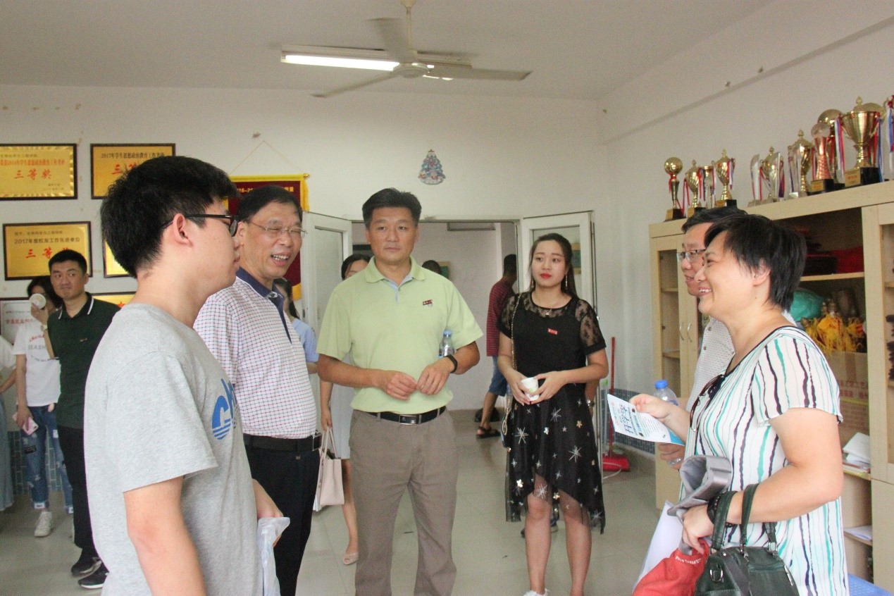 学院党委书记王群老师、党委副书记郑延平老师、团委书记周越老师以及辅导员林婧烨老师与郑丽婷老师亲临新生报到处,走访新生宿舍,与学生家长亲切交流。