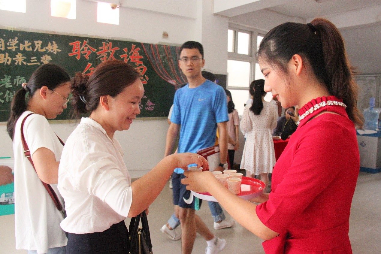 学院党委书记王群老师、党委副书记郑延平老师、团委书记周越老师以及辅导员林婧烨老师与郑丽婷老师亲临现场,感受迎新的喜悦。同时,我们邀请新生们为自己的父母奉上一杯茶,希望新生们能够“常怀感恩之心”,传达对父母亲人的感恩,将感恩教育作为新生入学的第一课。