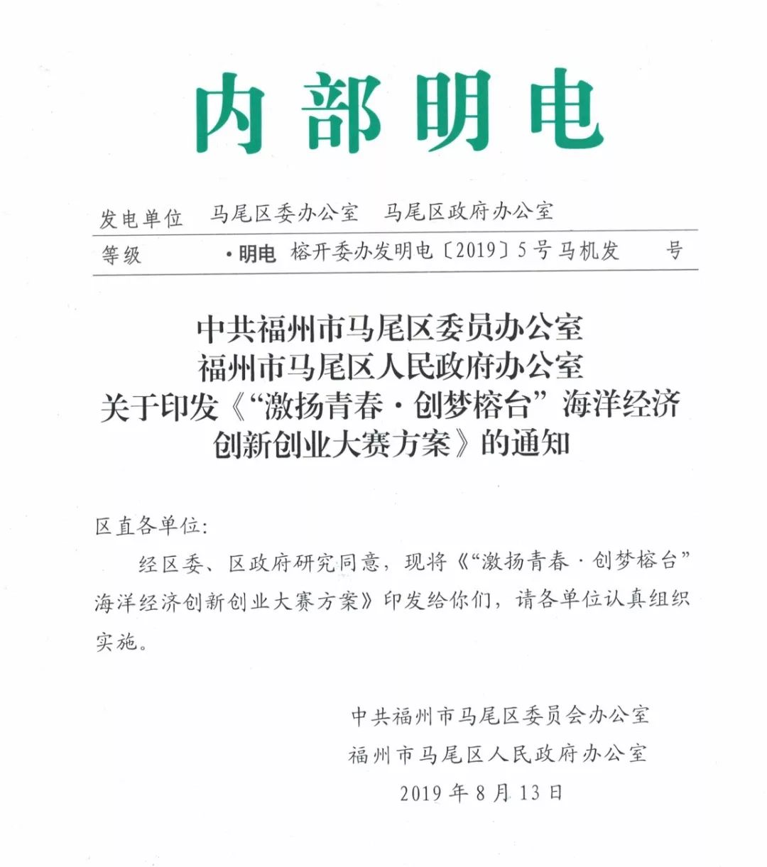 为深入贯彻习近平总书记关于支持青年人才创新创业的重要指示,吸引海峡两岸青年人才创新创业,落实《2018年福建海洋强省重大项目建设实施方案》及《“海上福州”马尾区行动方案》,促进我区冷链物流、远洋捕捞、水产品精深加工、海洋工程装备制造等海洋产业转型升级,推动我区海洋经济高质量发展,促进海洋经济产业回流,经协会发起,马尾区将举办“‘激扬青春·创梦榕台’海洋经济创新创业大赛”。