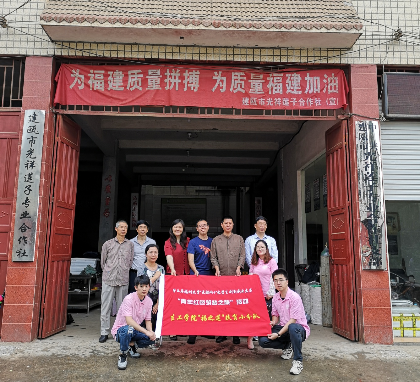 师生与建瓯光祥莲子合作社社员合影)