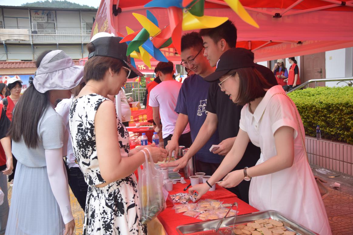 活动过程中,志愿者们邀请儿童以及家长们品尝由老师及学生亲手制作的茶饼干、茶牛轧糖等烘焙食品。为了让大家能够更加自由地选择自己所心仪的美食,本次活动还提供了色彩鲜艳、币值各异的代金券。在分享美食的同时,团队志愿者们还向孩子、家长和老师分发食品安全手册,向他们科普食品相关文化知识。老师们俯下身子主动与孩子们交流,在向他们科普知识的同时,耐心倾听并回答了他们的问题。