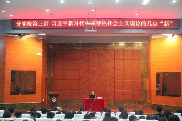 本次党课中,庄穆教授为各个入党积极分子带来一场思想盛宴,他以“谈习近平新时代中国特色社会主义思想的几点‘新’”作为主题进行讲解,从新时代、新矛盾、新使命、新思想、新征程、新战略和新举措几个方面来介绍习近平新时代中国特色社会主义思想:这是党和国家指导思想的又一次进步,这一历史性的变革对党和国家的事业发展有着重大深远的影响。