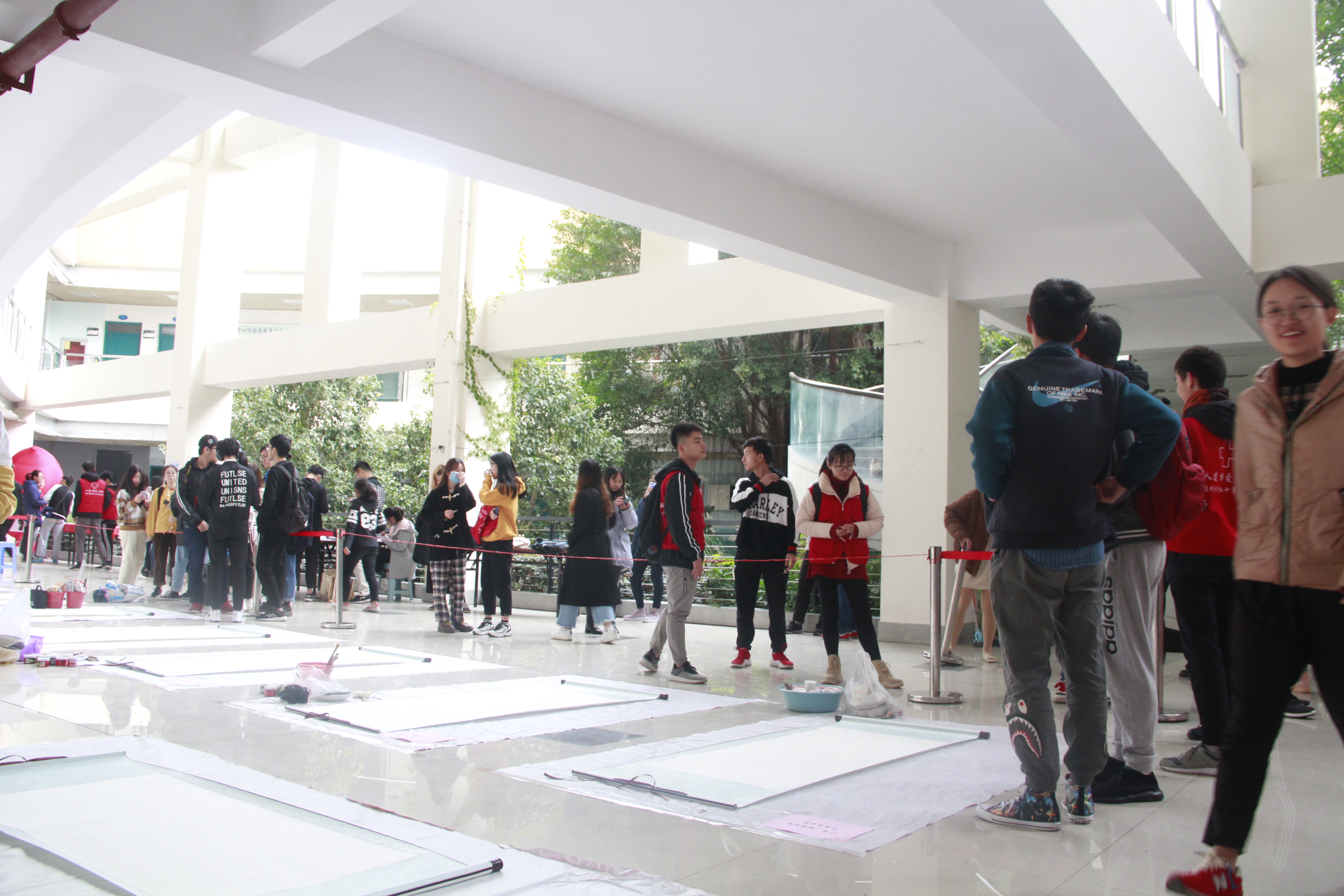 活动开始的前半个小时内,各个学院的代表早早地到场准备好了一系列的工具和颜料。活动开始后,大家都按照先前的分工进行创作,五彩的颜料勾勒出禁毒防艾的创意与信心。活动井然有序地进行着,画作完成后,现场主持人采访了各个学院的讲解员,从整体的布局到各个部分的分配,创作的理念都牢记于心。值得一提的是,我们到场的观众拿到选票的过程十分有趣,除了前期的说说、微博转发领取的选票外,还有现场参加游戏领取选票。在画作的创作过程中,现场的观众早已有了想投票的画作,游戏开始时,同学们都争着想参加游戏拿到选票,为自己心仪的画作投票。在解说员细心讲解后,评委老师作出评判,91猫先生最终获得2018年禁毒防艾知识画卷全校第五名的好成绩。