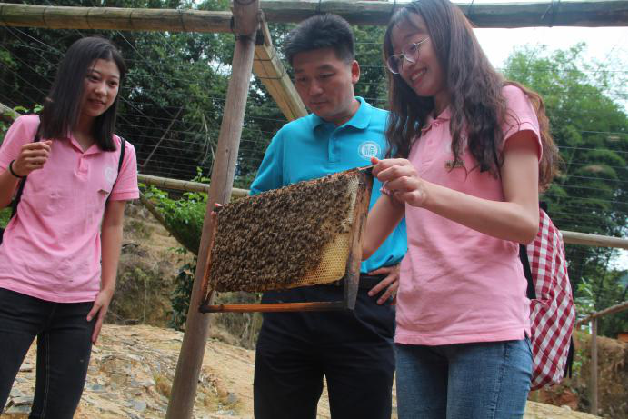 实践队依托学科专业知识开展科技支农活动,在实践过程中,队员们不仅与蜜蜂零距离接触,还体验了蜂农摇蜜的过程。通过与岭下店村村长、当地蜂农以及永泰县农业局相关工作人员的交流,了解了永泰县养蜂现状。与此同时,实践队员们还了解到农户养蜂时所遇到的问题,并和专业老师一起,利用专业知识对其进行初步解答。