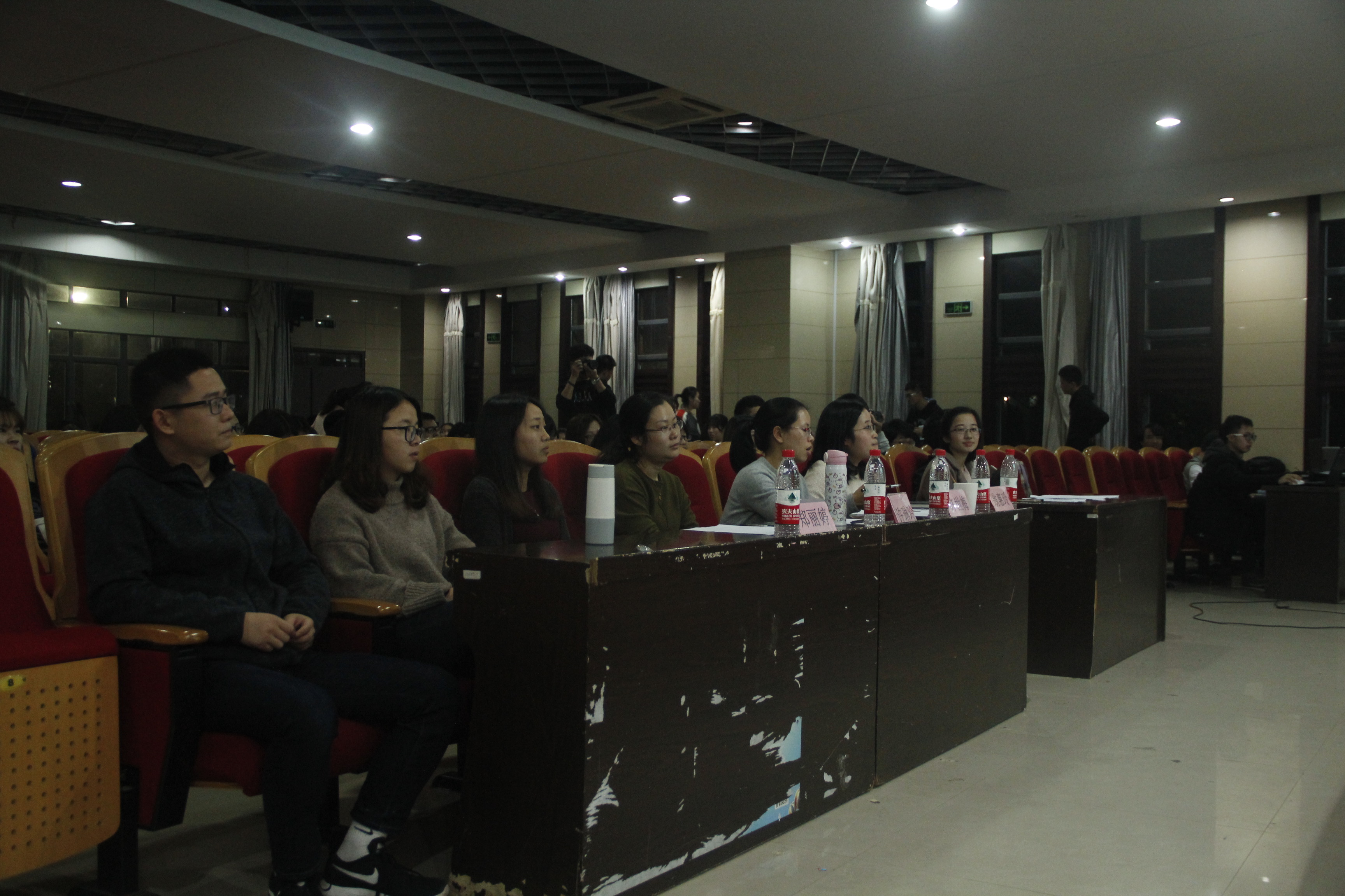 与紫金学院联合举办的心理剧大赛在素质拓展中心二楼的学术报告厅进行。到场的嘉宾是: 校心理中心的许世梅、许琳玲老师,生工16研究生辅导员郑丽婷,紫金16本科辅导员兼心理辅导员翁惠玲。