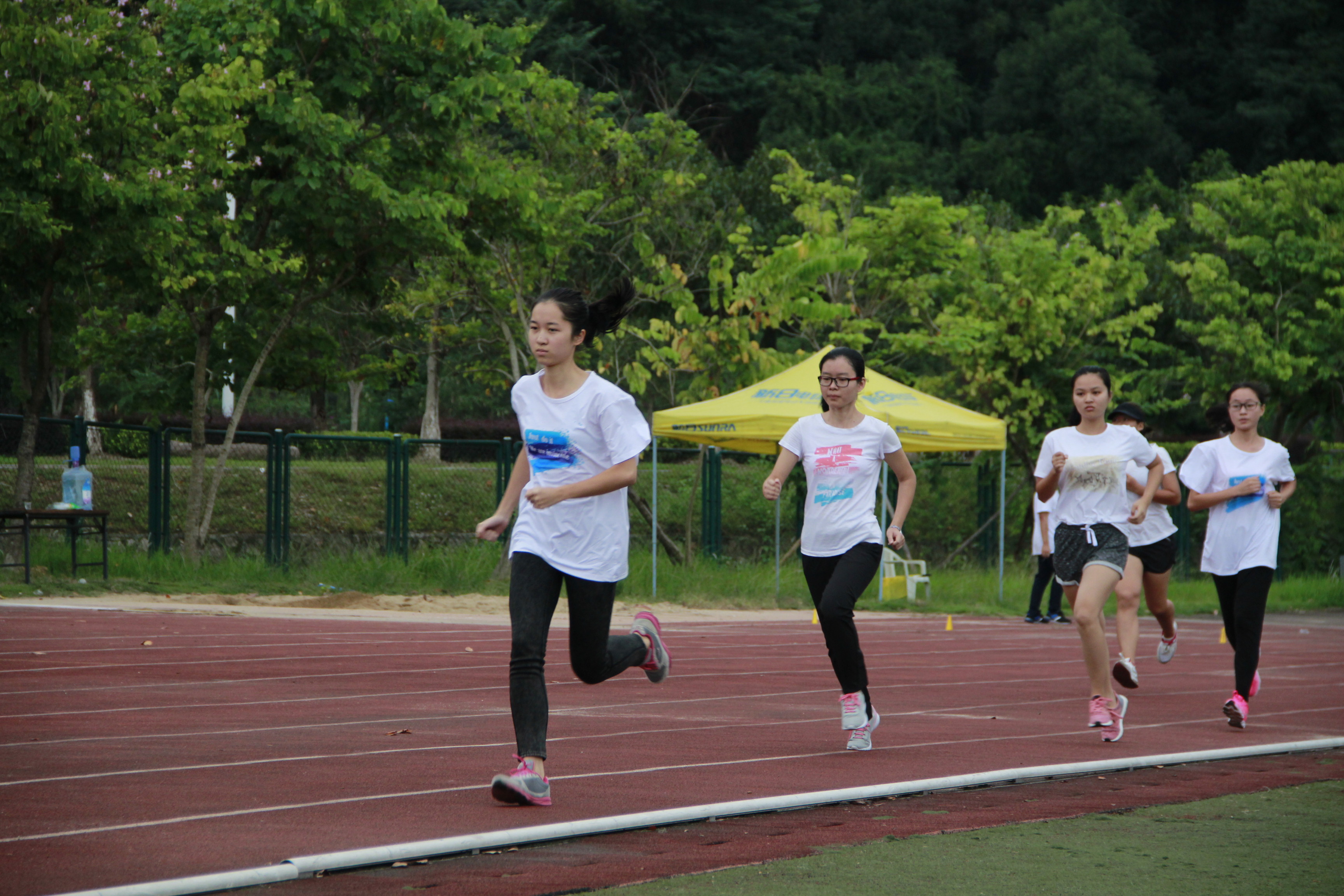 早上七点左右,离运动会正式开始还有一个小时,然而操场上已有不少的同学在为各班的后勤帐篷忙碌,一个个精心布置的多彩的小帐篷出现在操场周围。紧接着老师们带领着各自的裁判员小组,进行明确分工,有条不紊地进行比赛场地的布置及后续工作的准备。