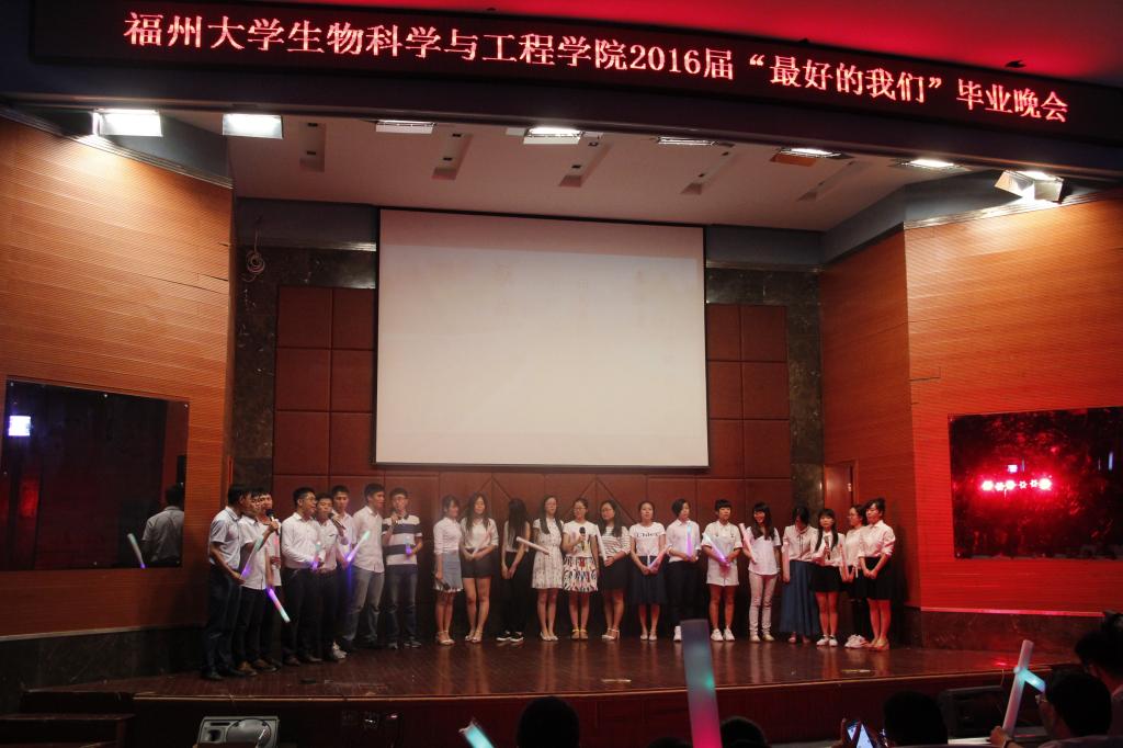 此次晚会以歌会友,一段活泼可爱的舞蹈“阳光姐妹淘”在一片期待中开始,活跃了现场的气氛。一曲改编的《学园南路的日子》唤起每个人心中在大学的回忆。谢钰莹带来幽婉优雅的古筝弹奏《see you again》展现出女性柔软的一面。生工歌手队陈荟羽等人带来一曲婉转动听的《不为谁而作的歌》。在众多的歌舞节目中,12级4班带来的《四班阵线联盟》让人更是眼前一亮,以其欢快轻松的曲调引爆全场。中场小游戏中王群书记与郑延平副书记的互动更是点燃了观众的激情。班级的合唱与舞蹈轮番上演,给毕业生们献上了一场视听盛宴。晚会接近尾声,全场灯光暗下,12级全体毕业生挥舞手中的荧光棒,以一曲《凤凰花开的日子》祝福毕业生们开启另一段精彩的人生之旅。