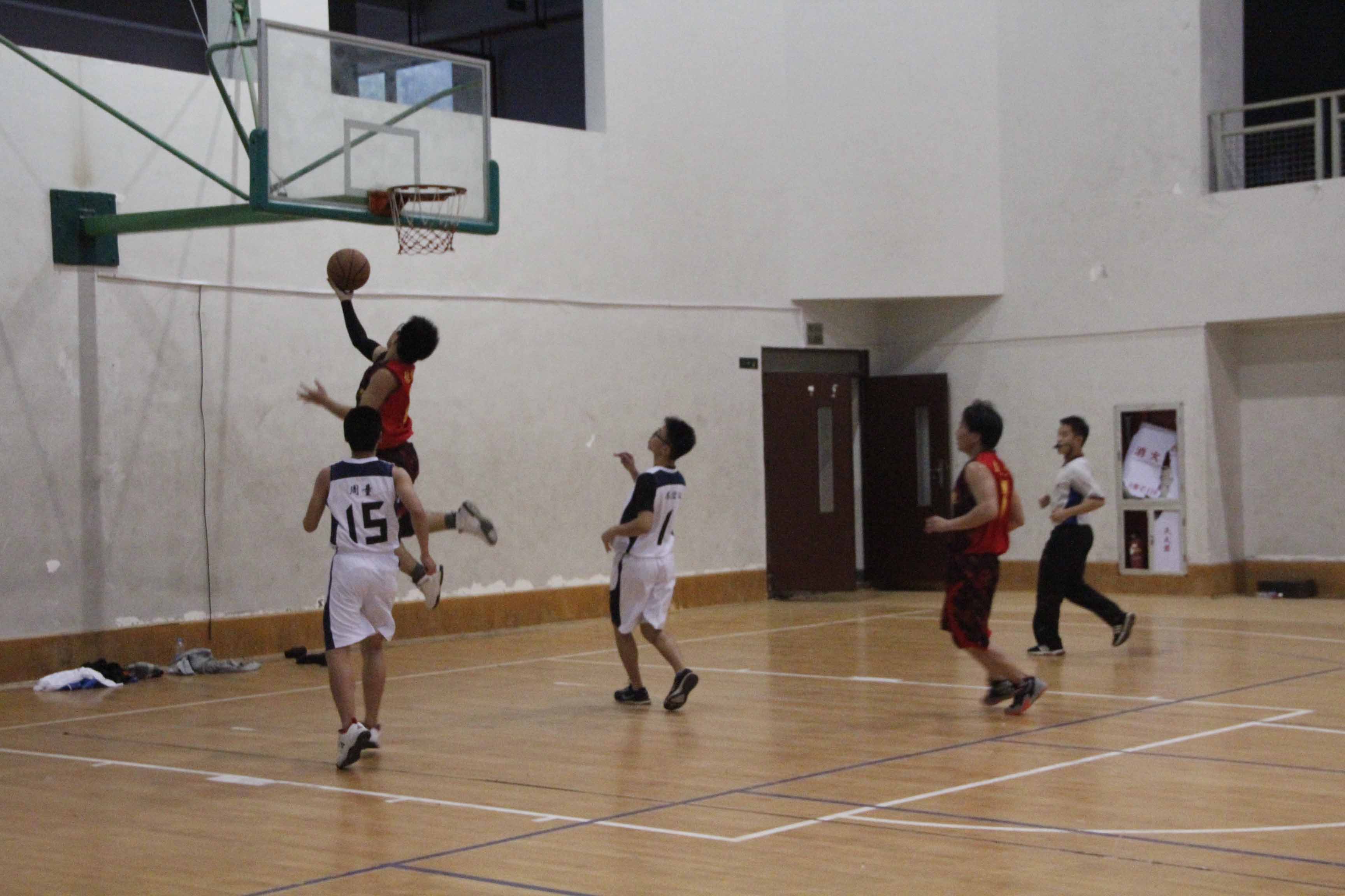 在裁判的哨响声中,篮球赛拉开帷幕,生工队不久便进了全场的第一个球,为生工队开了一个好头,紧接着生工队一步步拉开与外院男篮的差距,使比分达到16:06,随后外院队紧随而上,把比分追到17:15,生工队蓄势待发,从第二节开始,比分的差距再次被拉大,生工队的精准度极高,因外院男篮表现不佳,使得整场比赛,生工队一直领先外院队,最终,生工队以47:21战胜外院队,队长陈宇宁以总分12分成为全场的个人最高分。