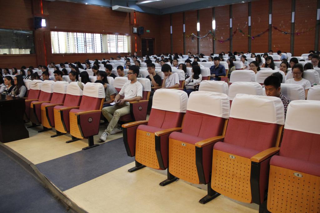 党委副书记郑延平,就业指导中心专家黄贵闽老师与12级辅导员林婧烨老师,参加该会议的是12级全体学生,林婧烨老师为此次会议的主持人。