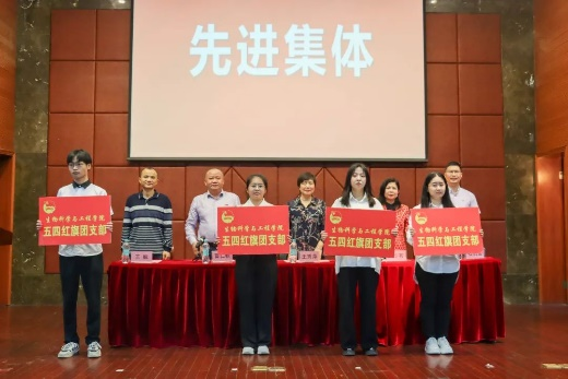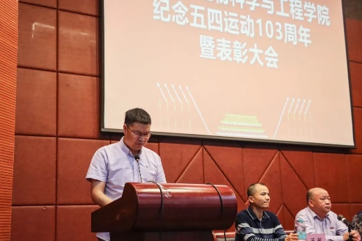 纪念表彰大会在庄严的国歌声中拉开帷幕。石贤爱副院长宣读了2021年度学校、学院“五四”表彰先进集体和先进个人名单,获奖师生代表依次上台领奖。
